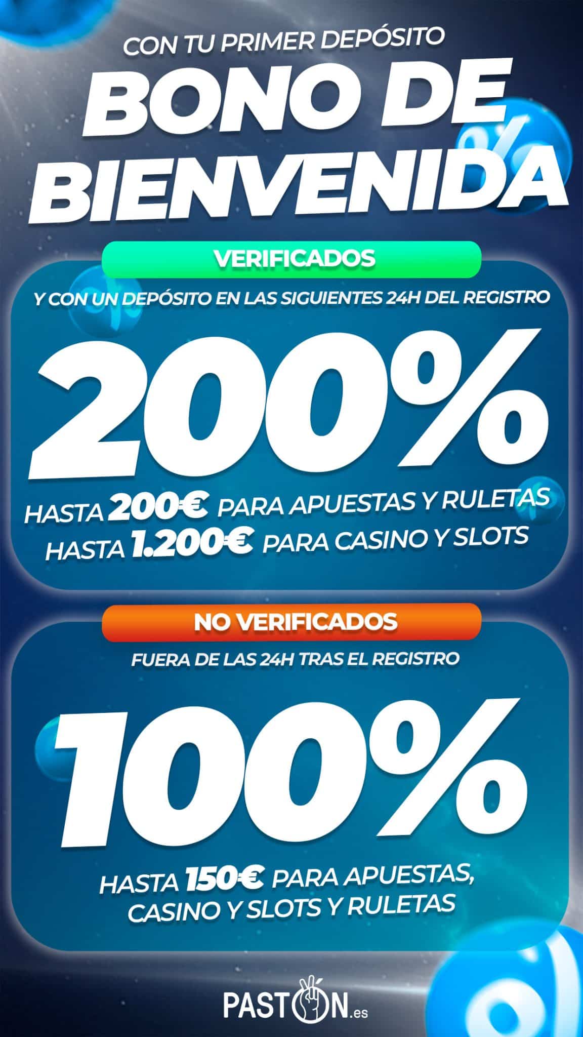 Es de suma importancia aclarar que los bonos de bienvenida de Pastón son diferentes dependiendo de si los activas con tu cuenta verificada o aun sin verificar. Por eso, nos centraremos en explicar esta diferenciación.